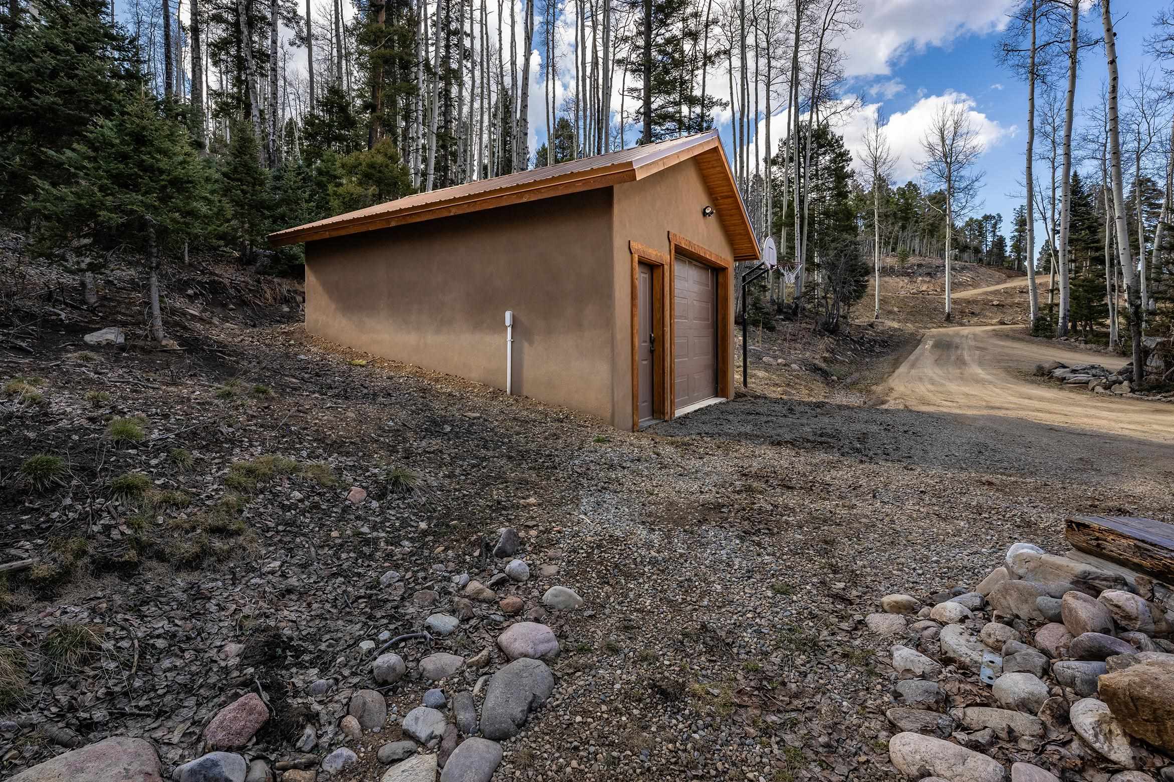 Escape to 8 acres of unparalleled solitude and serenity at the base of the stunning Latir cliffs. This unique property, located just north of Questa in the heart of the famous Taos sage, offers profound peace with breathtaking views in every direction. Greet the day with sunrise over the Latirs to the east and enjoy expansive views of Ute Mountain and San Antonio Mountain to the north. This well-maintained, single-level home is designed for comfort and sustainability. A photovoltaic solar array provides backup to your most essential conveniences, and a private well is complemented by an extensive water catchment system that nourishes fruit trees and gardens. Inside, the home is flooded with natural light, with views from every window. The fairly open living, kitchen, and dining areas offer a sense of connection while maintaining a separation of space. A welcoming indoor planter greets you at the entry, and a cozy kiva fireplace with an insert anchors the living area. The 3-bedroom, 2-bathroom layout includes a master suite with a unique greenhouse, providing passive solar heat and a beautiful wash of natural light. Step outside onto the large deck to witness spectacular sunsets over the vast Taos Mesa and Cerro de la Olla to the west. A detached garage provides ample space for vehicles and storage. Experience true tranquility in this thoughtfully designed 1996 off-site built home, where sustainable living meets the raw beauty of Northern New Mexico.