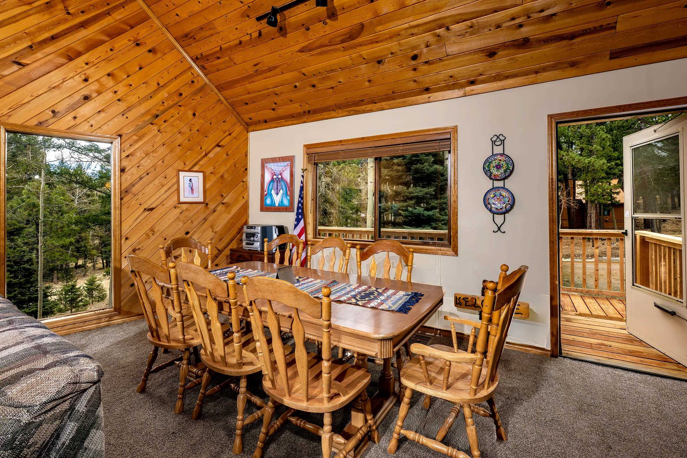 Discover the perfect mountain retreat just minutes from all the amenities of Angel Fire Resort! This true mountain cabin on a nice corner lot offers 3 bedrooms, 3 bathrooms, and plenty of space with 2,392 square feet—perfect for hosting family and friends. Enjoy cozy evenings by the wood-burning fireplace, fun-filled game nights in the game room with a pool table, and ultimate relaxation in the private hot tub. With an easy, flat-access driveway (no steep climbs required!) and a spacious 2-car garage, convenience meets comfort in this mountain getaway. Plus, with incredible rental potential, this home is an excellent investment opportunity. Start making unforgettable generational memories in the mountains today!