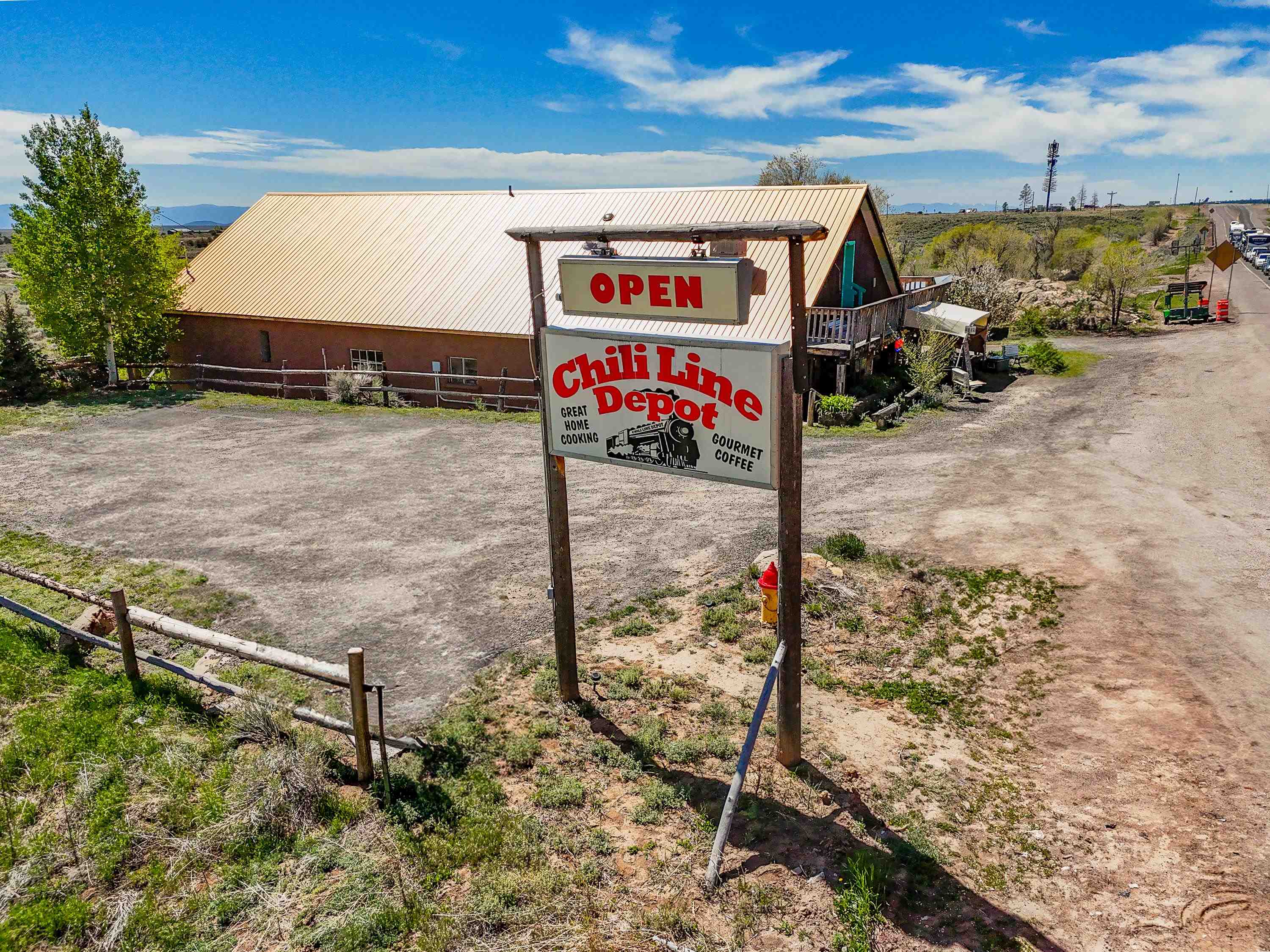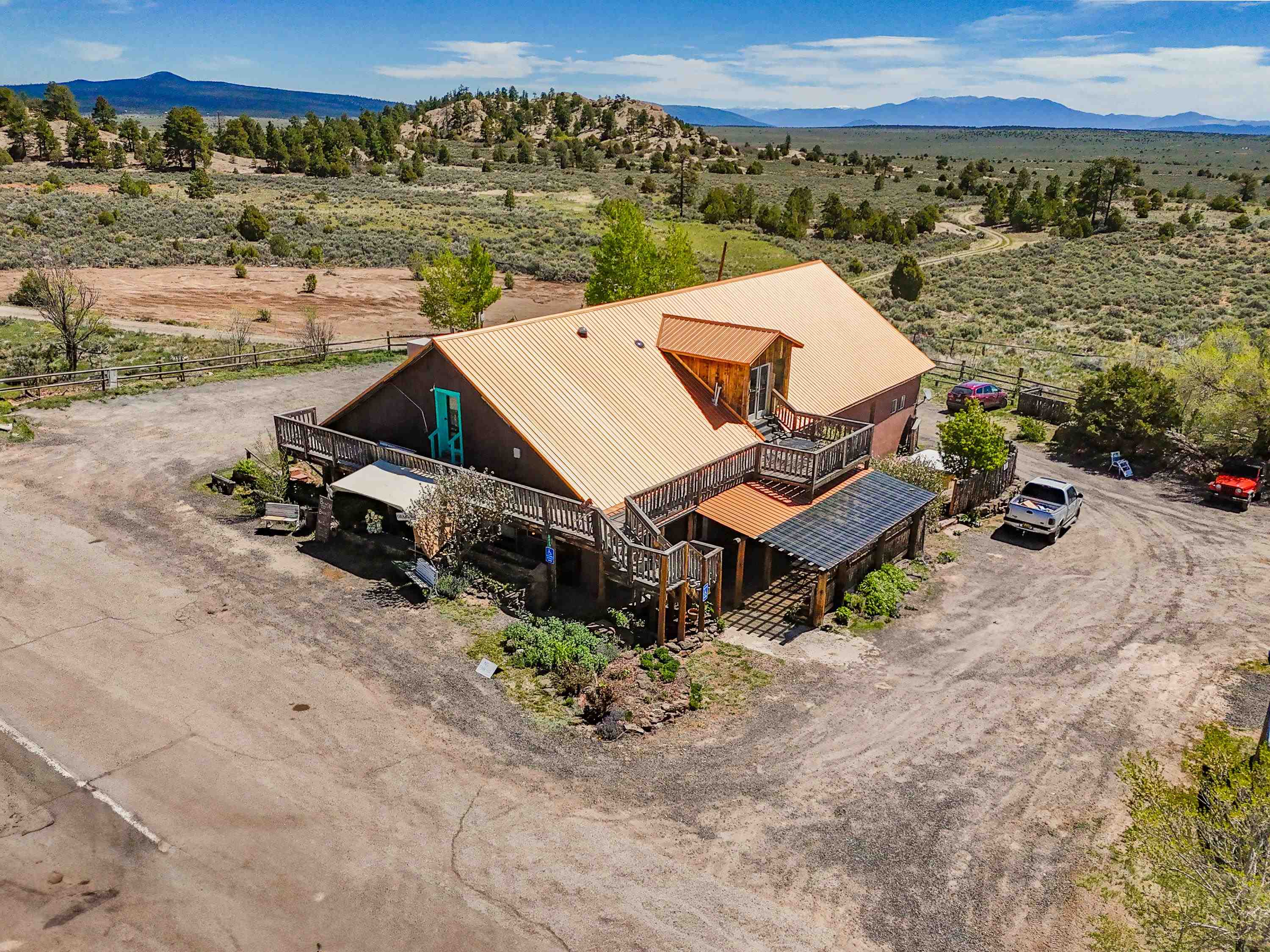 Welcome to the Chili Line Depot—named in honor of the historic D&RG narrow gauge railway that once connected Antonito, Colorado to Santa Fe, New Mexico from 1887 to 1941. Located in the heart of Tres Piedras, this unique property blends commercial and residential use and is currently home to a well-known restaurant and B&B. The building includes two guest rooms with private baths that are rented regularly, a two-bedroom, one-bath apartment with its own balcony, a spacious upstairs caretaker’s unit with a private deck and sweeping views of the Sangre de Cristo Mountains, and a upstairs two-room office with generous storage space. If you choose to continue operating the restaurant, it’s ready to go. The sale includes everything needed to hit the ground running: a full commercial kitchen, walk-in storage, stainless prep tables, dishwashing station, freezers, ovens, mixers, beer tap, linens, display cases, cutlery, dishware, and a fully furnished dining room. There’s also a stage in the main dining area that host's live music throughout the year. Outside, the charm continues with a covered flagstone patio for outdoor dining, a private hot tub surrounded by vine-covered fencing, mature trees, rock landscaping and walls, and a large greenhouse that supplies fresh vegetables during the summer. The property spans 1.19 acres, is connected to community water, and operates on its own septic system. The roof and stucco have both been recently redone. With over 6,400 square feet of heated space, this property offers plenty of options: continue the restaurant and B&B, convert it into a private home, or explore other uses entirely. A large parking area right of Highway 285 is perfect for motorhomes, bikers, and motorists to stop by and visit! The adobe structure itself is over 100 years old and full of history—it once served as a lively bar and dancehall, even hosting a young Glen Campbell, who played here with The Dick Bills Band and The Sandia Mountain Boys. The property is being sold without financials, and no value has been placed on the business itself in the listing price. All furnishing and equipment is included in the sale other than a small list of exclusions. For more about the Chili Line Depot’s unique past, see the associated documents. Whether you're drawn by the potential or the history, this is a special property well worth a visit.