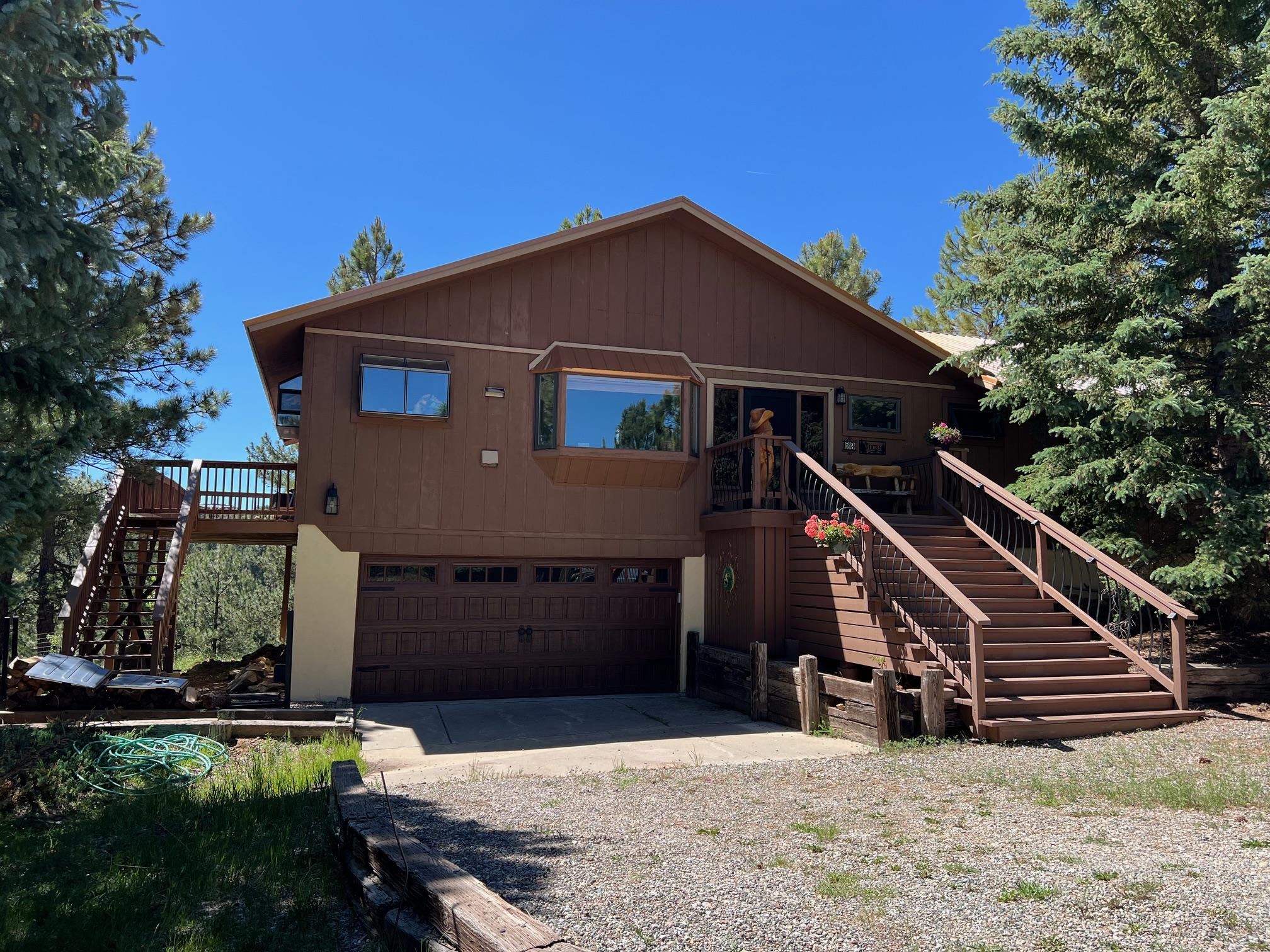 RUSTIC CHARM, SPACIOUS LIVING AREAS, MODERN UPGRADES, FIRE PIT, LOTS OF STORAGE Spacious, cozy and comfortable describes this 3 bedroom, 2 ½ bath home in Angel Fire just minutes from all the AF resort amenities. This conveniently located but feels secluded home comes with 2 large living areas and open layout with plenty of room AND storage for family and friends for a great mountain get away. Whether you use it as your personal vacation home or opt to use as a resort rental; this home conveniently sleeps 12. Main floor includes an open concept living room with a cozy wood burning fireplace and family dining area. The floor to ceiling windows overlooks the spacious outdoor living decks for soaking the rays, entertaining and outdoor grilling. Also included on the main floor is a spacious kitchen with a separate breakfast nook/coffee bar. The large master bedroom and bathroom which includes a whirlpool tub, separate shower and 2 separate sinks. The main floor also includes the half bathroom. Downstairs, with all new flooring, you’ll find 2 more bedrooms, a full bathroom, separate laundry room and spacious 2nd living area or grand-kids room that have 2 sets of bunkbeds, murphy bed, with gas fireplace. Downstairs access to a 2-car garage with storage for all those outdoor equipment and toys. Just off the back deck you will find a large rock firepit for those evening s’mores or just star-gazing nights. Two lots combined for .9 acre and 1 resort fee but best of all, this home is priced below current appraisal value! Angel Fire amenities includes PGA rated golf course, country club dining, fishing, biking, skiing and tennis/pickleball park. Listed by of Angel Fire Homes - .