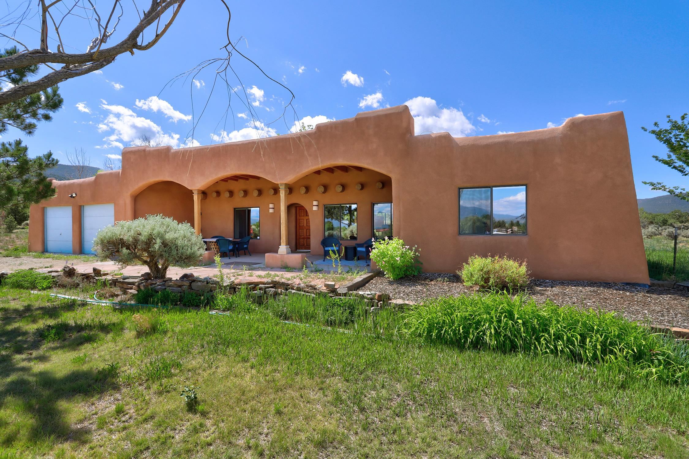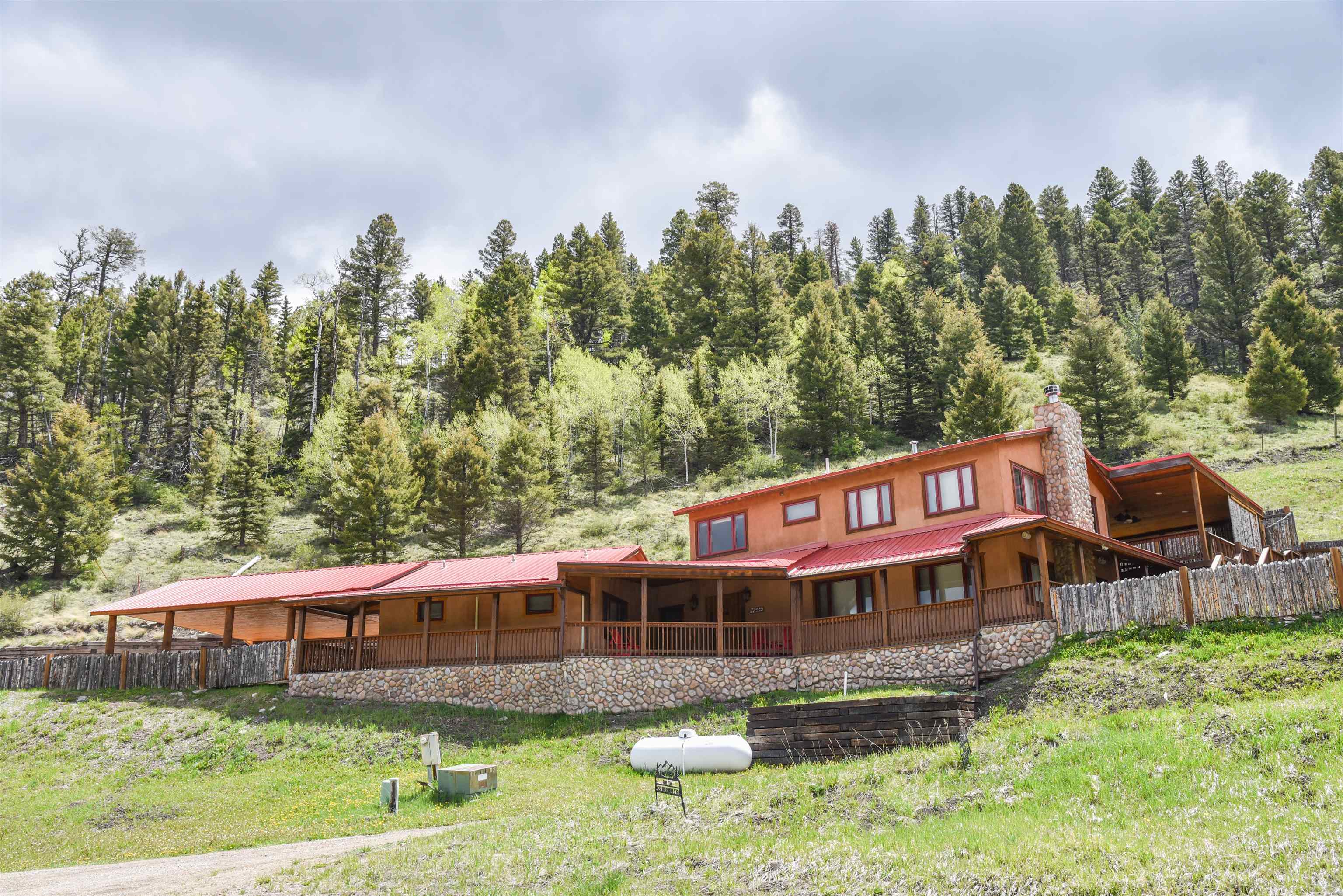 Stunning 4 bedroom mountain retreat with panoramic views and luxe finishes. This meticulously remodeled 4 bedroom, 4 &1/2 bath mountain home offers the perfect blend of elegance and rustic charm. Each spacious bedroom boasts its own private ensuite bath, ensuring privacy and comfort. The open-concept living area features a striking river rock fireplace and a custom corner wet bar, creating an inviting space for entertaining. Step outside to expansive, weather-resistant Trex porches, perfect for enjoying the breathtaking views of Wheeler Peak and the surrounding mountains. The property also includes a large carport and convenient RV hookups for guests or extra vehicles. Recently renovated, this home boasts a host of high-end upgrades, including a new metal rook, custom kitchen cabinets, Kitchenade appliances and saltillo tile flooring throughout. Thoughtfully designed custom armoirs and built-in bunk beds (in two bedrooms) add a touch of craftmanship and practicality.