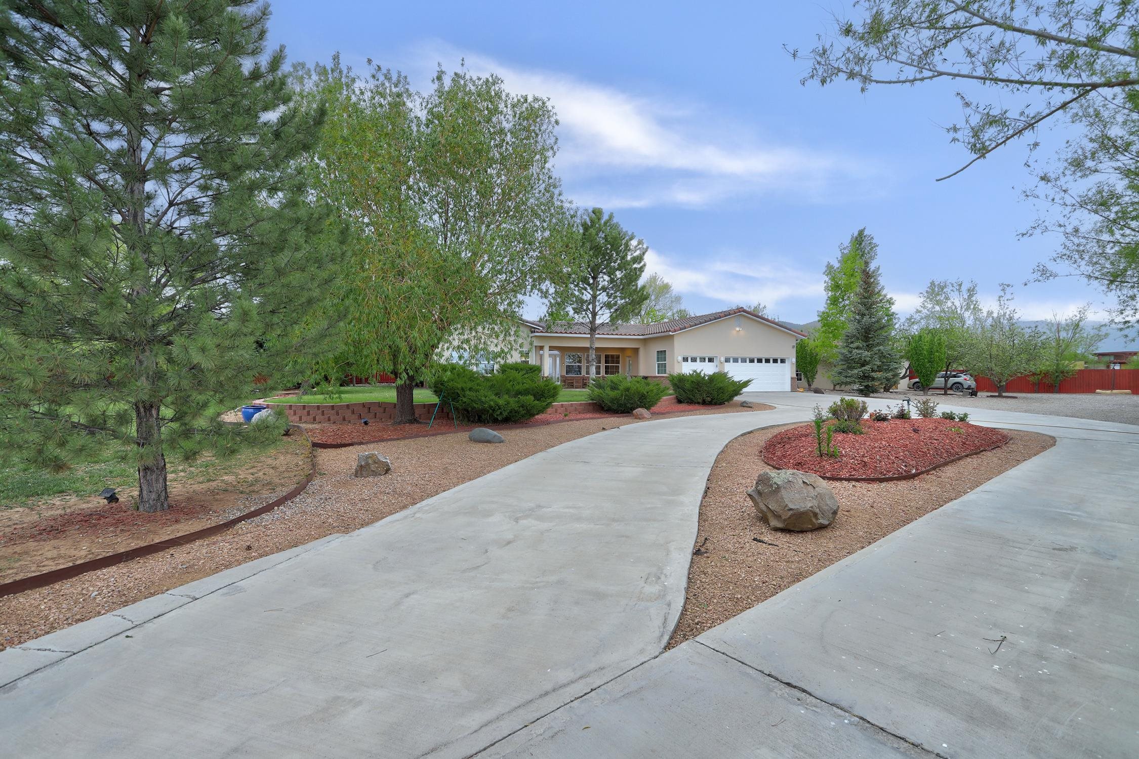 Unleash your Dreams at this Stunning Taos, NM Haven ~ At the end of a quiet, paved, and private road you will discover this stunning residence where space and thoughtful design converge to create an exceptional living experience. The main residence, encompassing a generous 2,277 square feet, offers a comfortable and elegant flow with three well-appointed bedrooms and three and a half beautifully finished bathrooms. Imagine the smooth touch of diamond finish walls, the sleek sophistication of granite countertops, and the gleam of stainless steel appliances in your culinary space with T&G ceilings and classy light fixtures throughout the home. Retreat to the primary suite and indulge in relaxation with a luxurious five-foot jetted tub and a private egress to the patio. Convenience is paramount with an attached, radiant-heated three-car garage, ensuring comfort even on the chilliest high desert mornings and a great workshop space. Beyond the main house, you will stumble upon a charming guest house providing an additional 800 square feet of living space, complete with two bedrooms, one bathroom and a dedicated private entrance. Your guests will appreciate the privacy and comfort, along with the convenience of its own attached two-car garage. Step outside and immerse yourself in the meticulously landscaped grounds, a verdant oasis featuring mature trees, lush grass, kept green with automatic sprinklers and a drip irrigation system. Recent upgrades ensure year-round comfort with the installation of two mini-split systems, providing instant heating and cooling to the primary bedroom and the main living/kitchen area. This remarkable property offers not just ample space, but a lifestyle of ease and enjoyment in the heart of Taos, easily accessible, and conveniently located next to all the amenities of the region. Reach out today see this stunning high desert haven for yourself!
