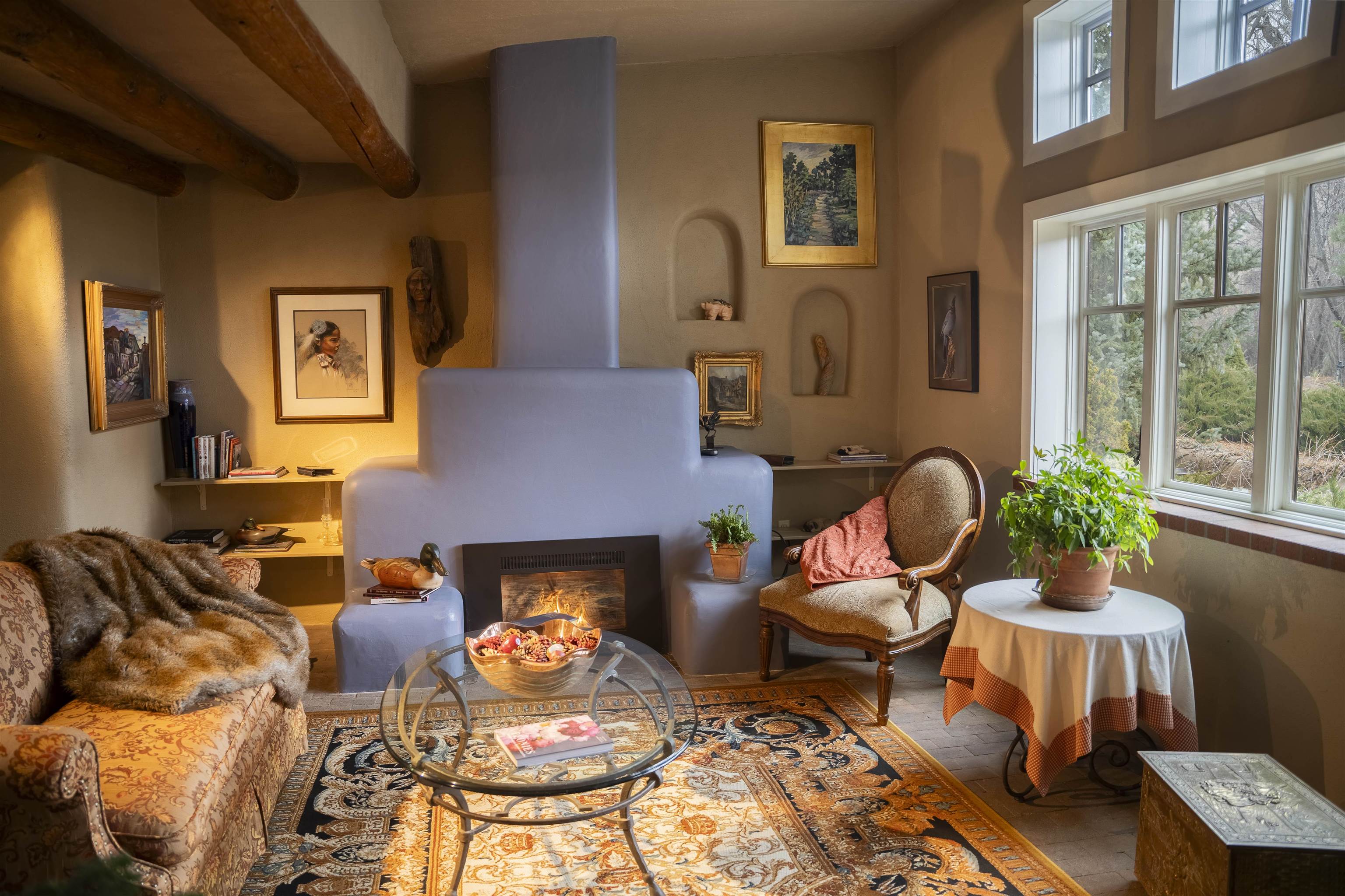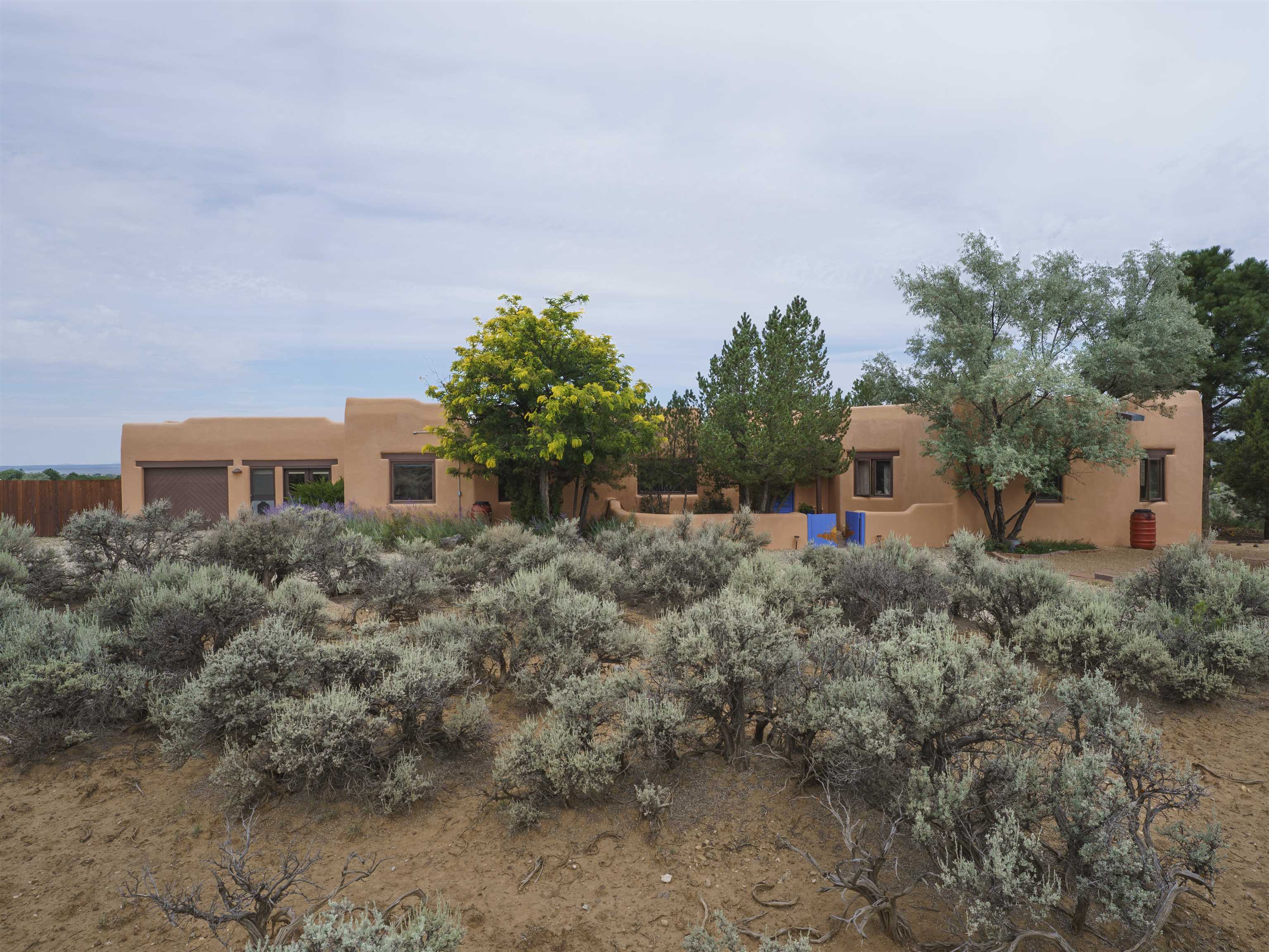 Nestled between Taos Mountain and the sweeping mesa, this inviting adobe-style home blends classic Northern New Mexico craftsmanship with modern comfort. Viga beam ceilings, Saltillo tile floors, and plaster walls create a warm, grounded atmosphere throughout the light-filled interior. The open-concept living area features a southwestern-style fireplace and picture windows that frame stunning mountain views, while the adjoining kitchen offers granite countertops, stainless steel appliances, and generous workspace for everyday living or entertaining. Two spacious bedroom suites—one upstairs, one down—provide privacy and flexibility for guests, remote work, or multi-generational living. The third bedroom and full bath complete the thoughtful layout. Step out to the covered patio or upper deck to watch the sunrise over Taos Mountain and set across the high desert sky. The fenced acre includes mature trees, open space for gardens or pets, and the security of a private well and acequia water rights. Located just a mile from Arroyo Seco’s cafés and market, and fifteen minutes from Taos Ski Valley or the Taos Plaza, this property offers both serenity and convenience—an authentic Northern New Mexico retreat built to stand the test of time. Listed by of Berkshire Hathaway HomeServices Taos Real Estate - .