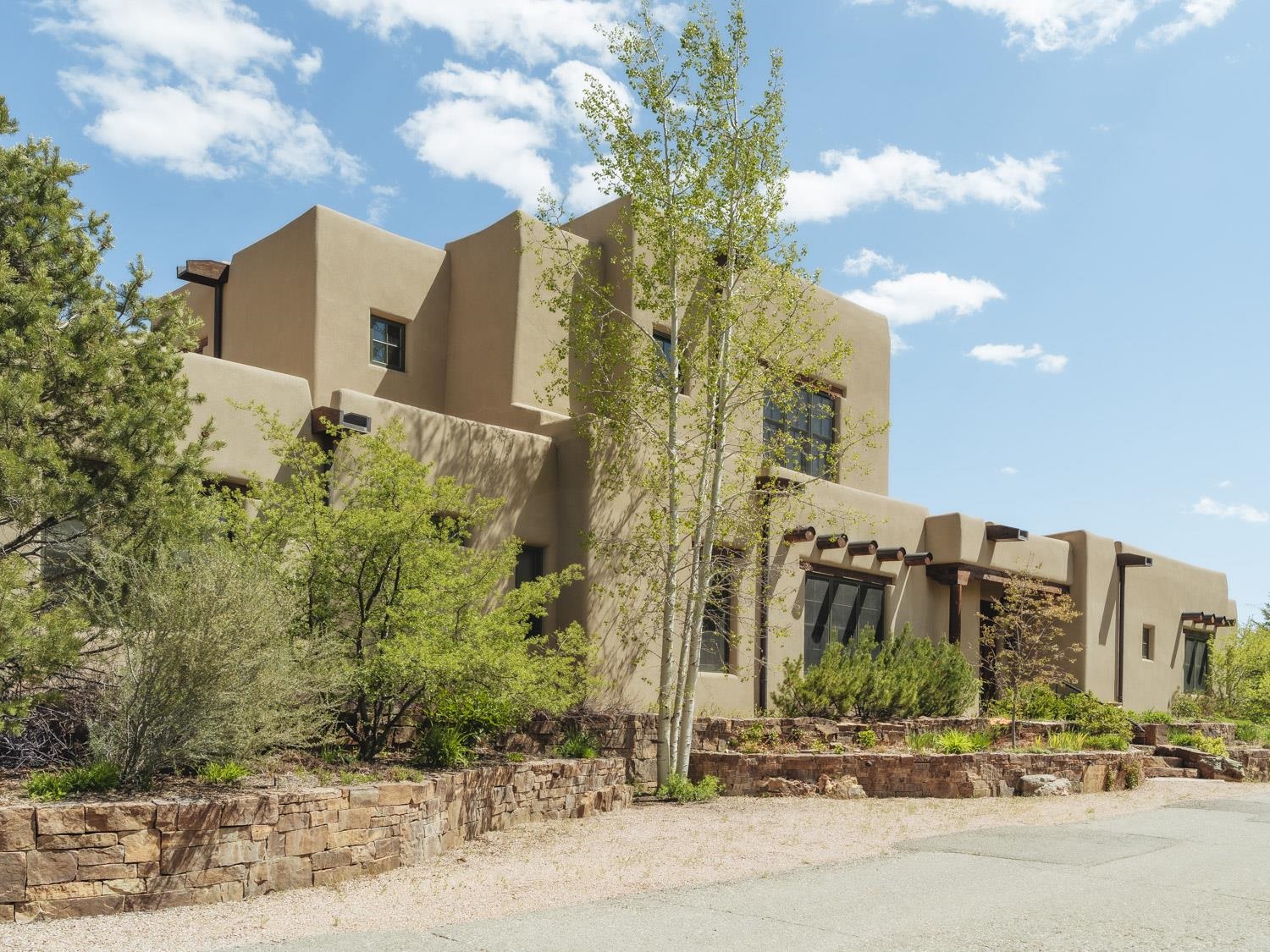 ESCAPE TO AN OASIS of tranquility in the heart of Taos, New Mexico. This exquisite 4,950 sf. 3 bedroom main house and a separate attached 2 bedroom casita, all nestled on .385 acres, is a masterpiece of design and craftsmanship. Step through the hand-crafted front door into a formal living room adorned with hand-plastered walls, 10' ceilings, custom bookcases, polished concrete floors and a southwestern fireplace. Vigas and herringbone latilla ceilings add warmth and character to this elegant space. The gourmet kitchen is a chef's dream, boasting a Jade Range, GE Monogram double-oven, Bosch Dishwasher & LG Refrigerator, custom wood cabinetry, granite countertops, a walk-in pantry, and LED under-cabinet lighting. The kitchen flows nicely to the interior courtyard or lush gardens for outdoor dining. Pantry/mud/laundry room with LG Washer/Dryer offers access to the heated two car garage. A long corridor leads to a luxurious primary suite, complete with a dressing room featuring his and her closets, a southwestern fireplace, and a spa-like bathroom with a walk-in shower and a large soaking tub. A thoughtfully designed guest suite, features built-in closets along with a spacious attached bathroom. Ascend to the second floor via a graceful staircase or convenient elevator to the beautiful great room with large elegant windows and doors, along with the continuation of latilla ceilings, built-in bookcases, and a hand-carved mantel gracing the fireplace. An additional bedroom, currently used as an office, a convenient stylish kitchenette, along with a contemporary bathroom complete the interior rooms on the upper level. Outside is a private portal w/ a raised wood-burning fireplace and comfortable built-in bancos. The portal offers ample space for entertaining family and friends as you enjoy the stunning views of Taos Mountain. Descend to the impressive wine cellar, where you'll find room for over 1,350 bottles, a sophisticated granite tasting counter, storage room, and a reassuring battery backup system. The attached casita with a separate entrance offers a delightful retreat; featuring a kitchenette, a living room with fireplace, and a sweet dining area. Two bedrooms and one bath can comfortably accommodate up to four guests.. The home is surrounded by adobe walls, tiered rock walls, mature gardens, perennial beds, and a gated vegetable gardens. There is also a separate lawn area with a private hot tub. Additionally, there is a free standing, 475 sf. storage shed, with mini split for heating and air conditioning, that can easily be converted to a cool artist studio or large workshop. Located within walking distance to the historic Taos Plaza, Kit Carson Park, and the town's vibrant art galleries, celebrated cafes and culinary scene. Adjoining lot is available for sale. Schedule your private showing today, and experience the unparalleled luxury and tranquility of this Taos sanctuary. Listed by of TAOS PROPERTIES REAL ESTATE INVESTMENT - .