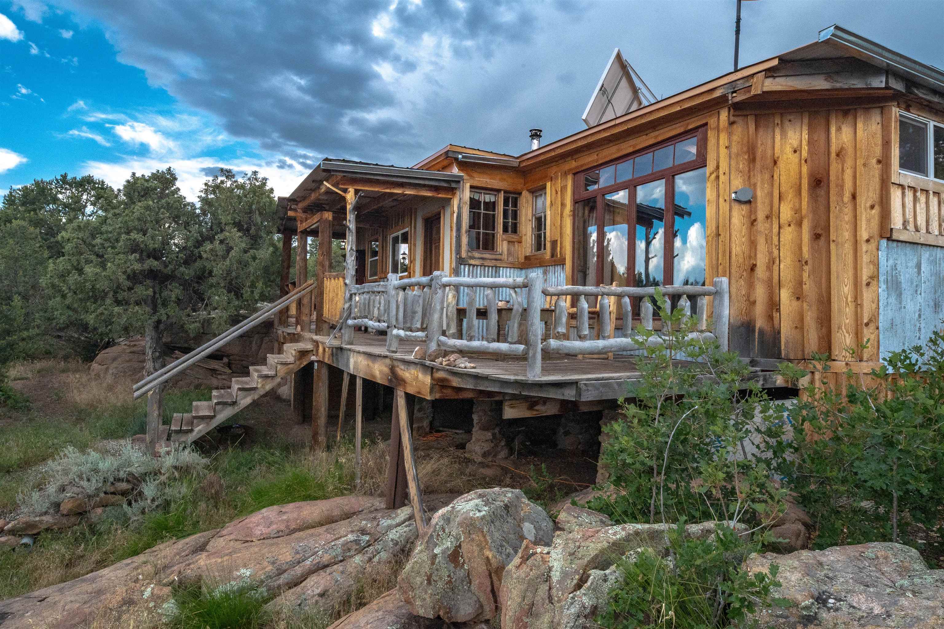 THIS PROPERTY IS ONLY AVAILABLE FOR SELLER FINANCING, AND AT INCREDIBLE TERMS! Please call for more details. Welcome to Raven’s Rock! This is a truly magical 28.9 acre retreat nestled into the stunning beauty of Northern New Mexico. Perched among ancient Ponderosa pines, Piñon and cedar trees, and sculptural rock formations, this one-of-a-kind, off-grid sanctuary includes a charming two-bedroom, one-bathroom cabin, an awe-inspiring guest treehouse, and a retro Airstream for additional space or creative use. Thoughtfully designed to blend into the hillside, the main home, approximately 1,800 square feet, offers stunning forest and mountain views from its expansive front deck. Inside, you’re greeted by a hand-crafted front door and rich wood floors that carry a sense of warmth and craftsmanship throughout. The eat-in kitchen features abundant storage, a walk-in pantry, and a gas range that is perfect for off-grid culinary adventures. The main house has a beautiful soapstone woodstove, and there is even a brand new one, that is still in its shipping container, ready to go into the treehouse. Both bedrooms are outfitted with custom-built beds offering generous under-bed storage, and the bathroom features a freestanding soaking tub with shower, brand-new composting toilet for added ecological sustainability, and access to a large closet/storage area. The home's impressive off-grid infrastructure includes a powerful solar system backed by eight supercharged batteries, discreetly housed in a rear utility room, along with a 1,600-gallon water catchment tank integrated into the home. This back room was built as an indoor green house with large South-facing windows, and it has an office area with built-in desk and shelves. The home’s plumbing is fully pressurized, and while the catchment system has proven more than sufficient, a well is believed to be feasible with water expected between 150–190 feet below the surface. The home is being sold partially furnished. Tucked into the trees, the spectacular guest treehouse is a destination, and it is completely solar-powered and filled with forest charm. This treehouse is nestled literally into an 80-foot Ponderosa tree and is a must-see build. Nearby, the 1963 Avion travel trailer adds a dash of nostalgic flair and versatility to the property, perfect for guests, studio space, or a quiet retreat. Can outhouses be magical? At Raven’s Rock, we believe they can. The property features two uniquely designed outhouses, each with its own unexpected charm. In addition to the main home and guest spaces, you'll find a thoughtfully designed workshop and storage building, with extra firewood and building materials neatly stashed behind, ready for your next creative project or homesteading task. A composting area behind the home supports your gardening ambitions, while thoughtfully placed benches throughout the property offer quiet spots for outdoor reflection, morning coffee, or sunset views. If all of this isn’t enough, there are wild horses seen roaming through the property regularly. The property offers many other opportunities for wildlife watching and hunting and affords incredible mountain views. Whether you’re seeking a sustainable homestead, an inspiring creative retreat, or simply a place to breathe deeply and reconnect with nature, Raven’s Rock is a rare and beautiful offering!! Listed by of Coldwell Banker Mountain Properties - .