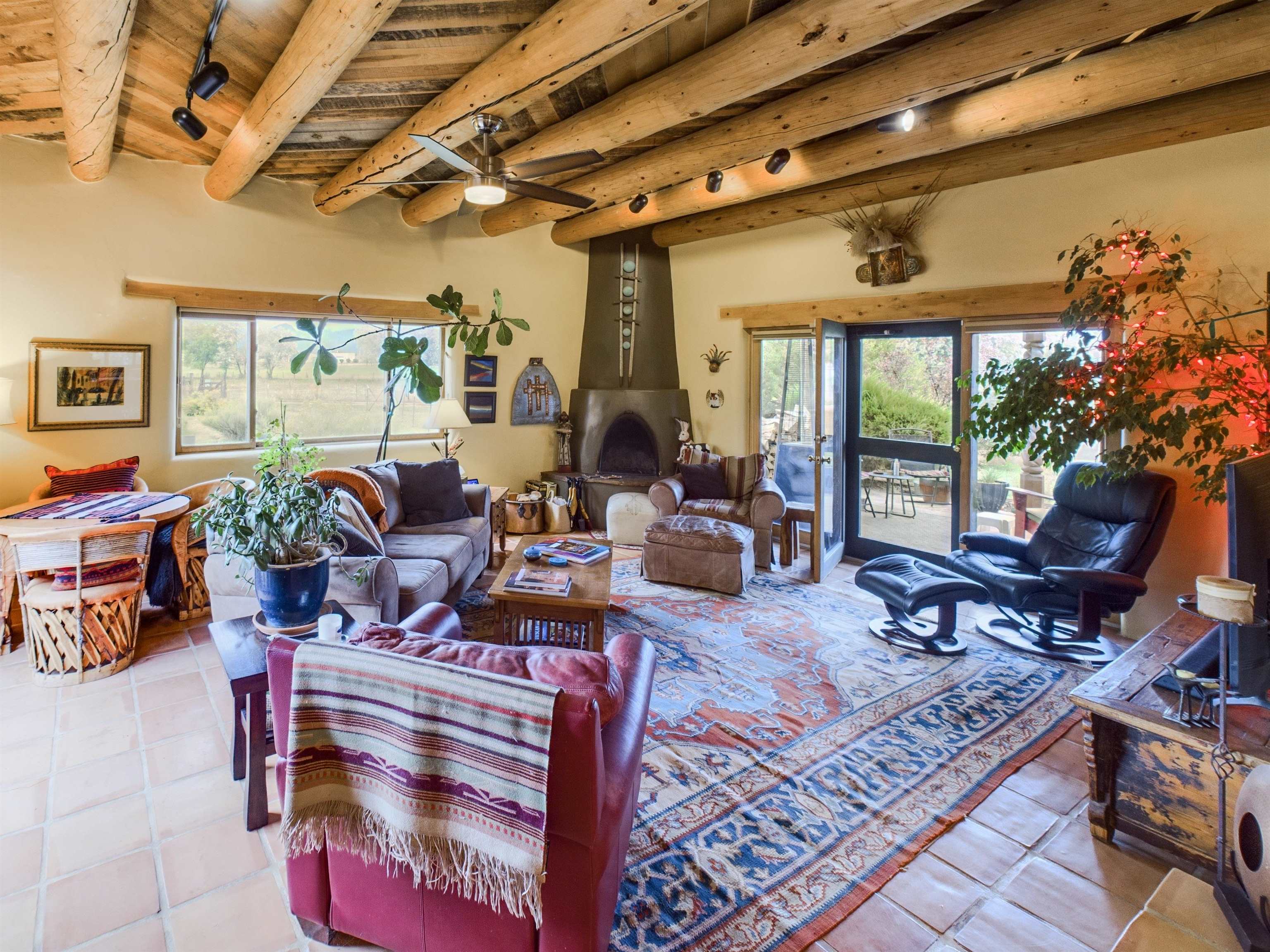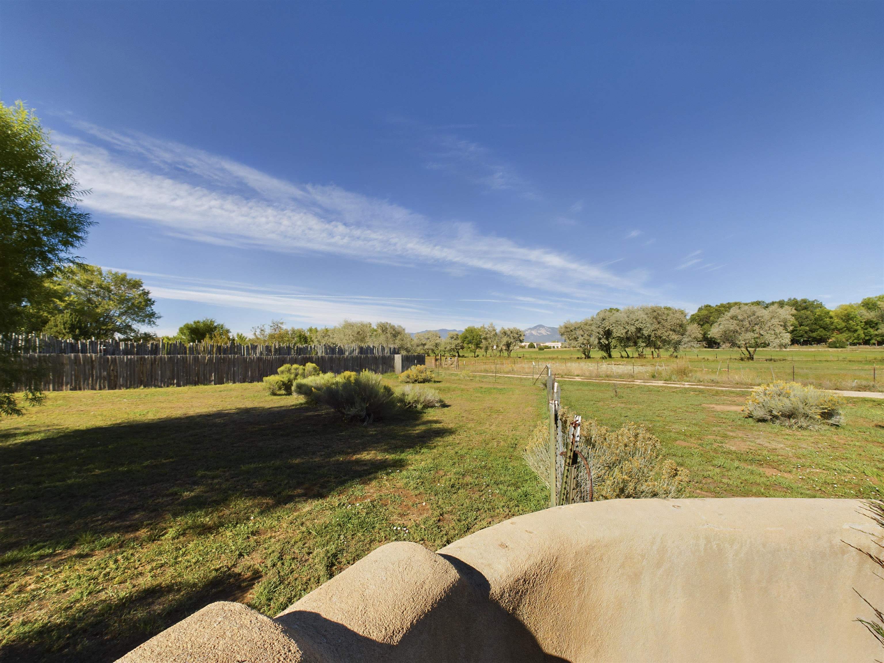 One of a kind 3BD/2BA extensively upgraded condo offering approx. 1,475 SF of light-filled living that feels more like a private patio home. This thoughtfully designed residence features soaring ceilings, abundant windows with views from every room, and a warm Southwestern aesthetic anchored by a beautiful kiva-style fireplace. The open living, dining, and kitchen areas create an inviting flow ideal for everyday living or entertaining, while a dedicated office space and utility/laundry room add functionality. Step outside to a large, professionally xeriscaped backyard, once unfinished and now transformed into a serene outdoor retreat. Enjoy a covered portal, mature fruit trees, raised garden beds, and a bocce court—perfect for relaxing or hosting guests. The outdoor space is both private and low maintenance, enhanced by natural landscaping and screened utility areas. Additional highlights include an oversized insulated garage, approximately 400 SF of non-freezing attic storage, and a spacious primary suite with a walk-in closet. Located within a well-maintained 10-unit subdivision featuring a shared common orchard over 1-acre, this home offers a rare combination of privacy, community, and outdoor enjoyment. Recent community-wide stucco repairs and repainting completed in 2025 add peace of mind. Conveniently located just minutes from town amenities and approximately 40 minutes to Taos Ski Val, this is a truly special Taos offering with extensive upgrades throughout.