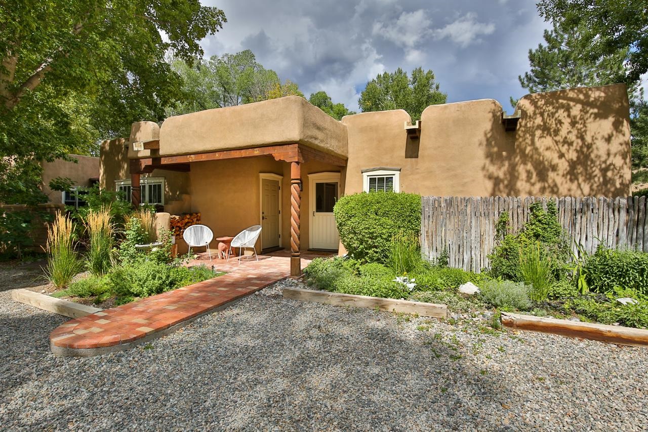 Nearly New Desert Modern | Taos Country Club Area | Completed just two years ago, this 3-bedroom, 2-bath contemporary Southwestern residence offers the rare combination of modern construction, timeless design, and iconic Sangre de Cristo views. Located near the fairways of the Taos Country Club, the home showcases clean architectural lines and a refined, high-desert aesthetic — thoughtfully designed for both comfort and elevated entertaining. A gracious split floorplan provides privacy for the primary suite, creating a serene retreat separate from guest bedrooms or workspace. The expansive great room serves as the home’s architectural centerpiece, where living, dining, and kitchen flow seamlessly with a cozy Southwest style fireplace tucked into the corner. Large vigas and a high ceiling add to the elevated feel of the principal living space. The kitchen is anchored by beautiful wood cabinetry and a substantial peninsula/bar— equally suited for intimate dinners, boozy brunches or larger gatherings. Additional highlights include: Attached heated two-car garage, mini-split to keep you cool in the summers, Paved road access for effortless year-round living, Modern systems and construction completed just two years ago, Clean, contemporary Southwestern design, Expansive views of the mountains, mesa and nearby golf course, close to hiking, biking, rafting and the town of Taos. The interior of the home is cozy and move-in ready, while the exterior awaits your creative vision. Make your outdoor space truly your own. (Some images have been virtually staged with landscaping and walled-courtyards) This stunning home feels current, intentional, and move-in ready — offering the peace of mind of newer construction paired with the beauty of one of Taos’ most desirable settings.