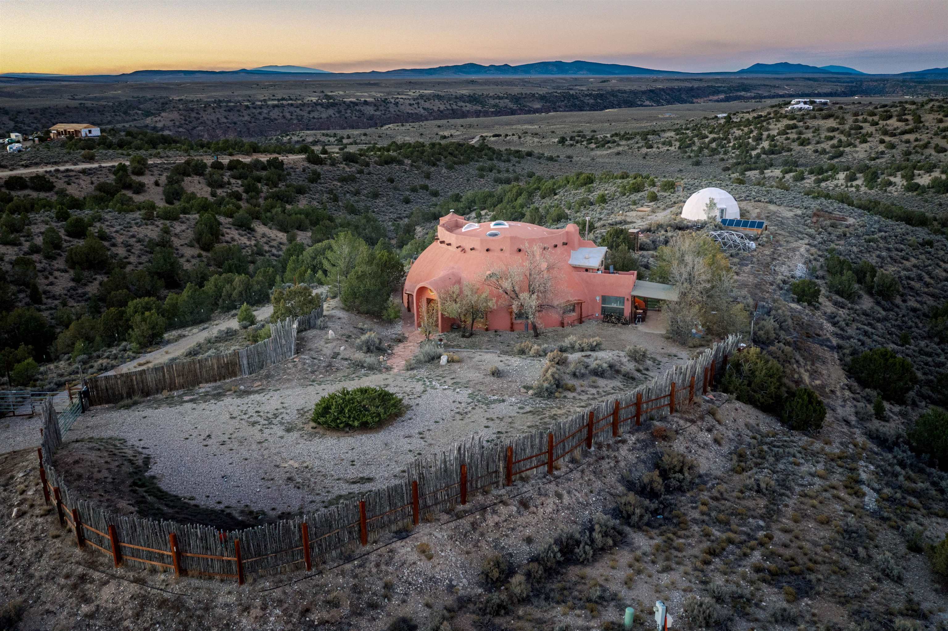 A river runs through it! Just 8 minutes from Taos Plaza, this rare 27+ acre property is both a horse haven and a thriving wildlife sanctuary. The main straw-bale home offers natural comfort year-round, while the guest house provides private space for family or caretakers. The expansive irrigated pastures and wetlands create an unmatched sense of peace and privacy. Equestrian facilities include a 4-horse barn, multiple loafing sheds, and ample grazing areas. When it's time to unwind, swim year-round in the heated lap pool surrounded by nature and mountain views. Protected by a conservation trust in part, this property offers sustainable living, abundant wildlife, and proximity to everything Taos has to offer — a true New Mexico treasure.