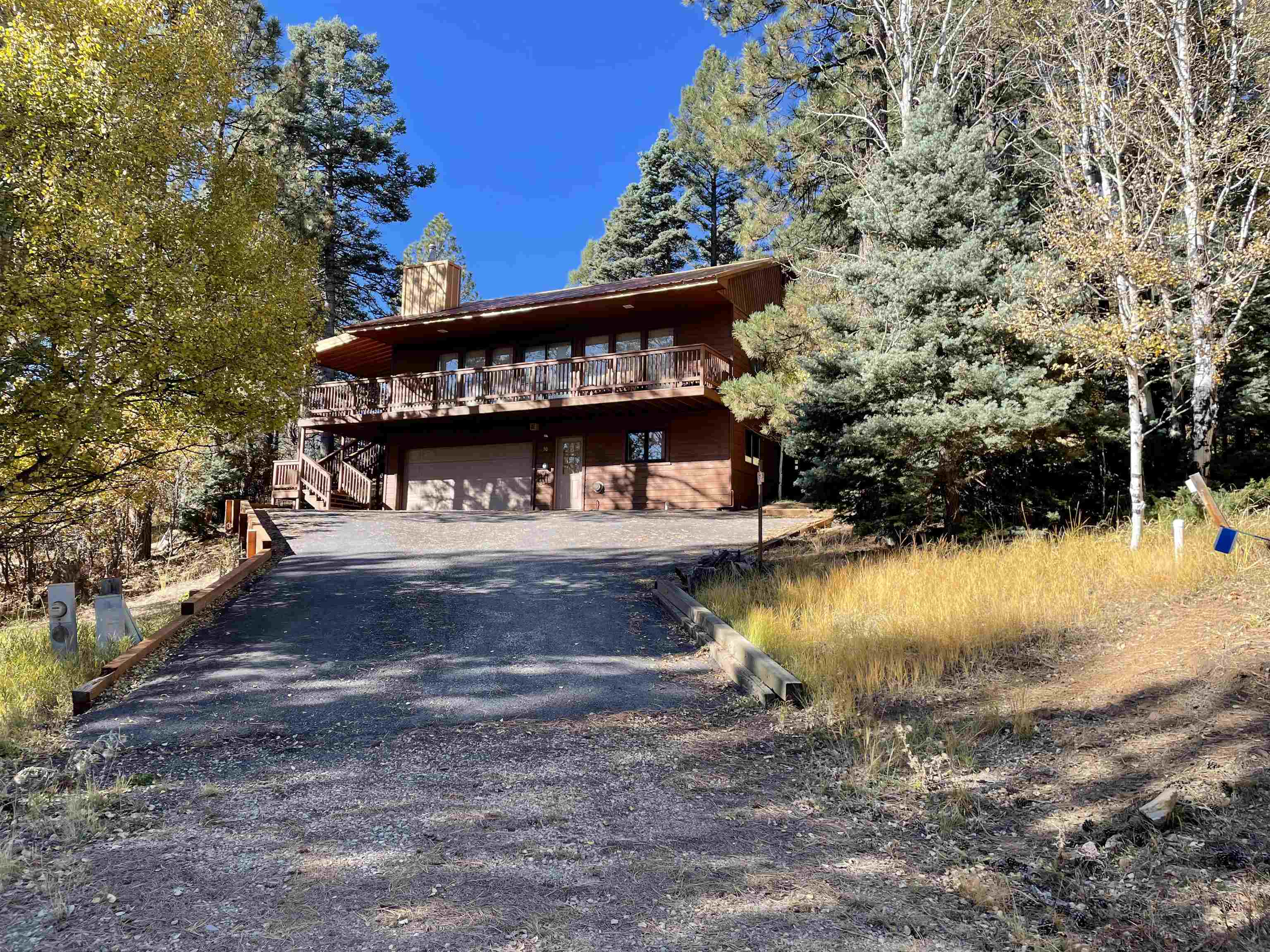 In the northern mountains of New Mexico, just off the Enchanted Circle in Angel Fire - One of the most beautiful properties in the Black Lake area. On approximately 11.83 acres of well maintained land, completely surrounded by split-rail fencing cut from the property. Sutton-built house, approximately 2645 sq-ft of heated living space, is perched on a hill with a large open deck overlooking mountain views, meadows, and a fenced-in orchard of fruit trees. Vegetable garden, fenced to keep out the elk and deer-friends, is ready for spring planting. Hummingbird heaven. There is a guest house, approximately 280 sq-ft - 1 BDR, 1 BA, kitchen - made from 140 yr old barn wood from a ranch in Durango, CO. 1140 +/- sq-ft outbuilding houses an office/shop with workbench as well as a separate bay for storing equipment, 574 +/- sqft outbuilding can house a travel trailer, car or truck, etc. Deeded entry into Carson National Forest is a short distance down the road. Kit Carson fiber optic internet is run to house for lightning-fast communications. Get out of the heat and pressures of the city and work from the stress-free mountains of northern New Mexico where the average summer temperature is 76 degrees with little to no humidity and, better still, almost, if not, mosquito-free. Mosquitoes, chiggers, No-See-Ums, poisonous snakes, and more don't choose to live at this altitude. Angel Fire Resort with its family-friendly ski mountain, nationally recognized mountain bike terrain park, PGA-rated golf course, $15 mill country club, tennis and pickleball courts, etc. is only 8 miles away on all-weather roads. Angel Fire Airport, primarily for private aircraft, has a jet-capable runway and is also approximately 8 miles away. Advanced Air now operates 5 round-trips/week from Albuquerque. Please come visit!