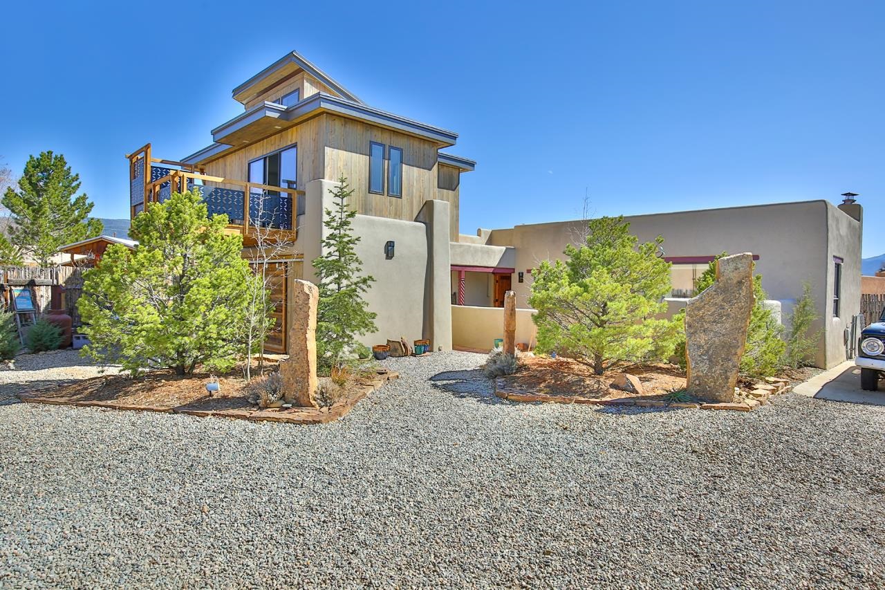 This well-designed 4-bedroom, 5-bathroom home offers a flexible and functional layout, with approximately 2,619 square feet of interior space on a half-acre lot. Located just over two miles to town, the property provides a quiet, forested setting while remaining close to everything Angel Fire has to offer. The main home includes three bedrooms and three bathrooms, with a large open-concept living, dining, and kitchen area. Ample windows and forest views make the space inviting and comfortable. Just off the main living area is an attached hot tub room that looks out into the trees. Connected to the main house by a breezeway is a converted living space which features a private bedroom, 2 bathrooms, a full kitchen, and an upstairs living area. With long-term rental history, this is the perfect choice for your next home or investment.